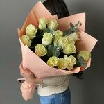 Белые розы 15 шт с эвкалиптом ♥️