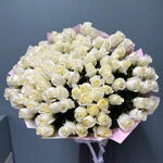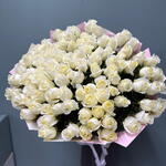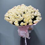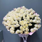 Этот великолепный монобукет состоит из 101 розы в белоснежном оттенке Вайт Шоколад, элегантно упакованных в 8 листов аква бумаги. Каждый цветок подобран с особой тщательностью, создавая неповторимый ансамбль. Оттенок роз символизирует чистоту и нежность, делая этот букет идеальным подарком на свадьбу, день рождения или любой другой памятный момент. Выразите свои чувства столь выразительным и изящным способом.