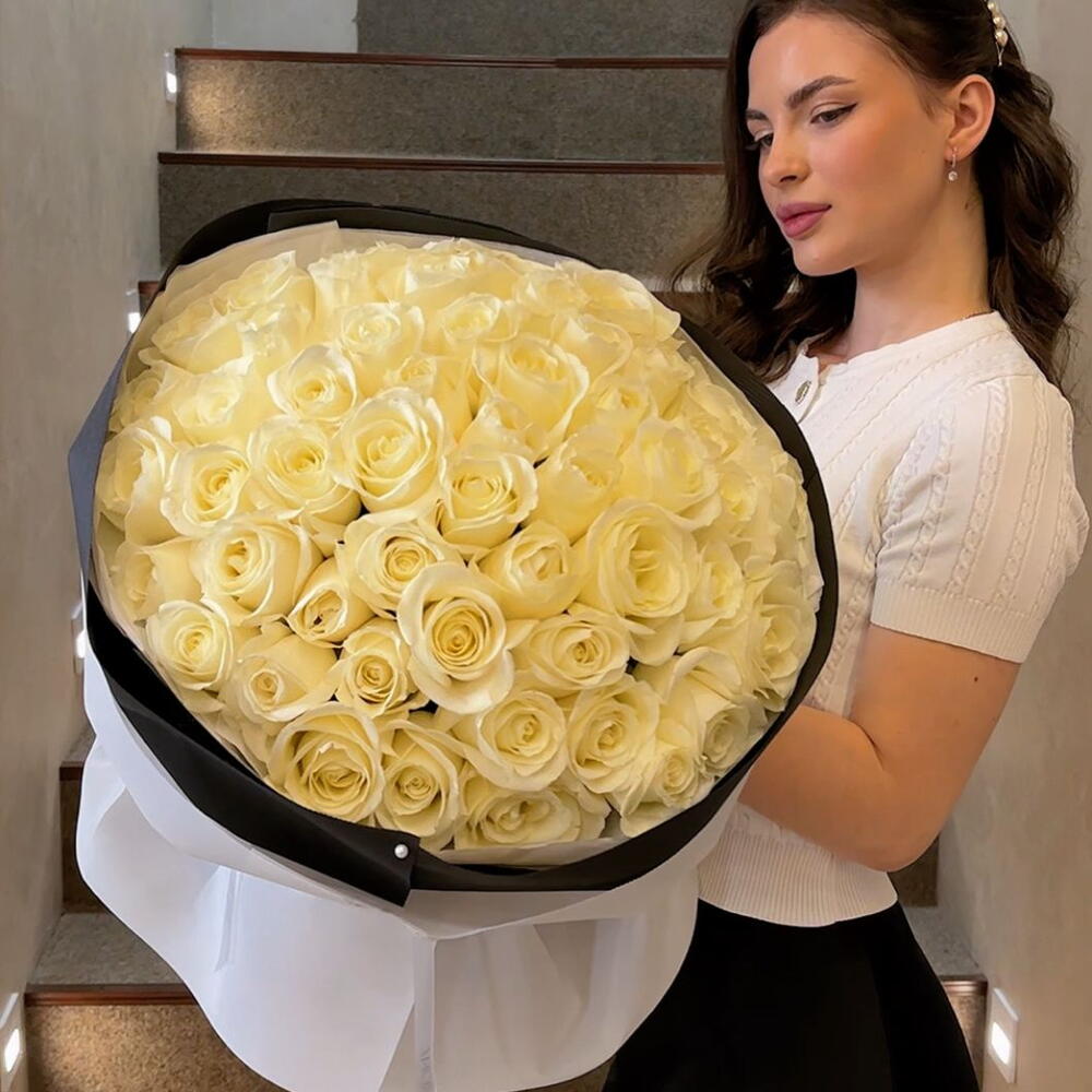 Белые розы в интересном оформлении