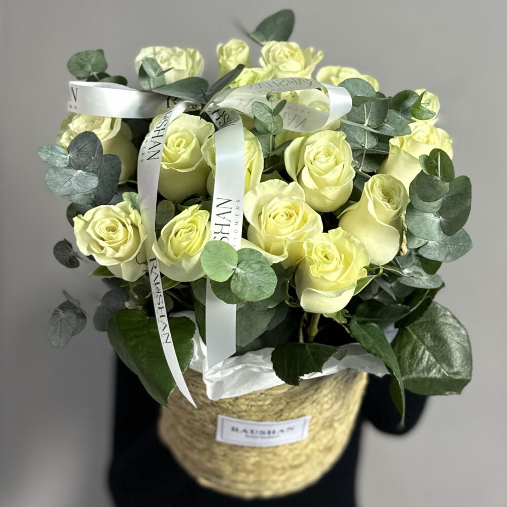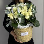 Белые розы в кашпо