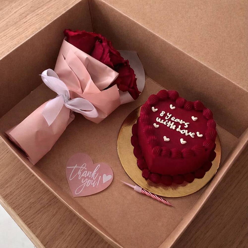 Романтичный и чувственный подарок для самых важных слов. Бархатный торт в форме сердца с нежным кремом и аккуратной надписью дополнен букетом алых роз. Идеальный выбор, чтобы признаться в любви, отметить годовщину или сделать незабываемый сюрприз. Состав: — Торт в форме сердца (красный бархат / сливочный крем) — Декор с надписью и сердечками — Букет роз — Подарочная коробка — Свеча Вес торта: ≈ 650 кг Формат: Торт в коробке + цветы в упаковке, готово к вручению.