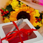 Нежный бенто-тортик в паре с ярким букетом свежих цветов станет идеальным подарком для любого случая. Цветы подарят настроение и уют, а торт наполнит момент сладкими впечатлениями.