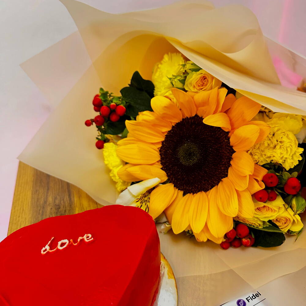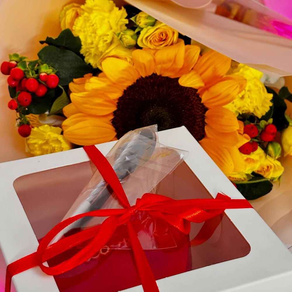 Нежный бенто-тортик в паре с ярким букетом свежих цветов станет идеальным подарком для любого случая. Цветы подарят настроение и уют, а торт наполнит момент сладкими впечатлениями.