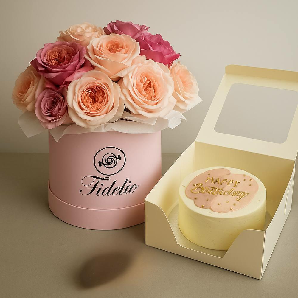 Классический букет роз в сочетании с бенто-тортиком Happy Birthday — стильный и душевный подарок. Розы подчеркнут особенность момента, а торт станет сладким акцентом праздника и оригинальным поздравлением.