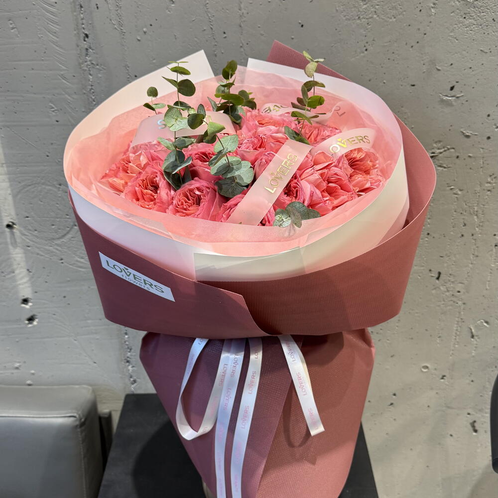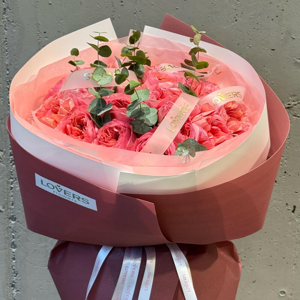 Пионовидная роза - 15 шт. Эвкалипт Цинерея - 4 шт.
