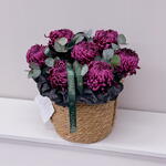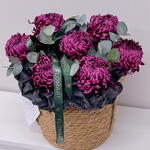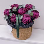 Кашпо - 1 шт. Эвкалипт Цинерея - 1 шт. хризантема бигуди - 7 шт.