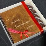 Подарочная коробка - 1 шт. Открыточка с вашими пожеланиями - 1 шт. блокнот ручной работы - 1 шт. королевские финики в бельгийском шоколаде - 5 шт.