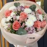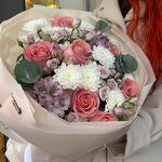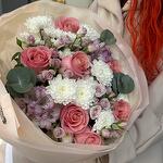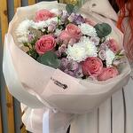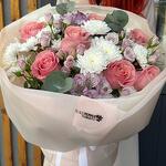 Альстромерия - 2 шт. Хризантема кустовая - 3 шт. Роза - 7 шт. Кустовая роза - 5 шт.