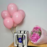Шарики - 1 шт. бенто тортик - 1 шт. букет гортензий - 1 шт.