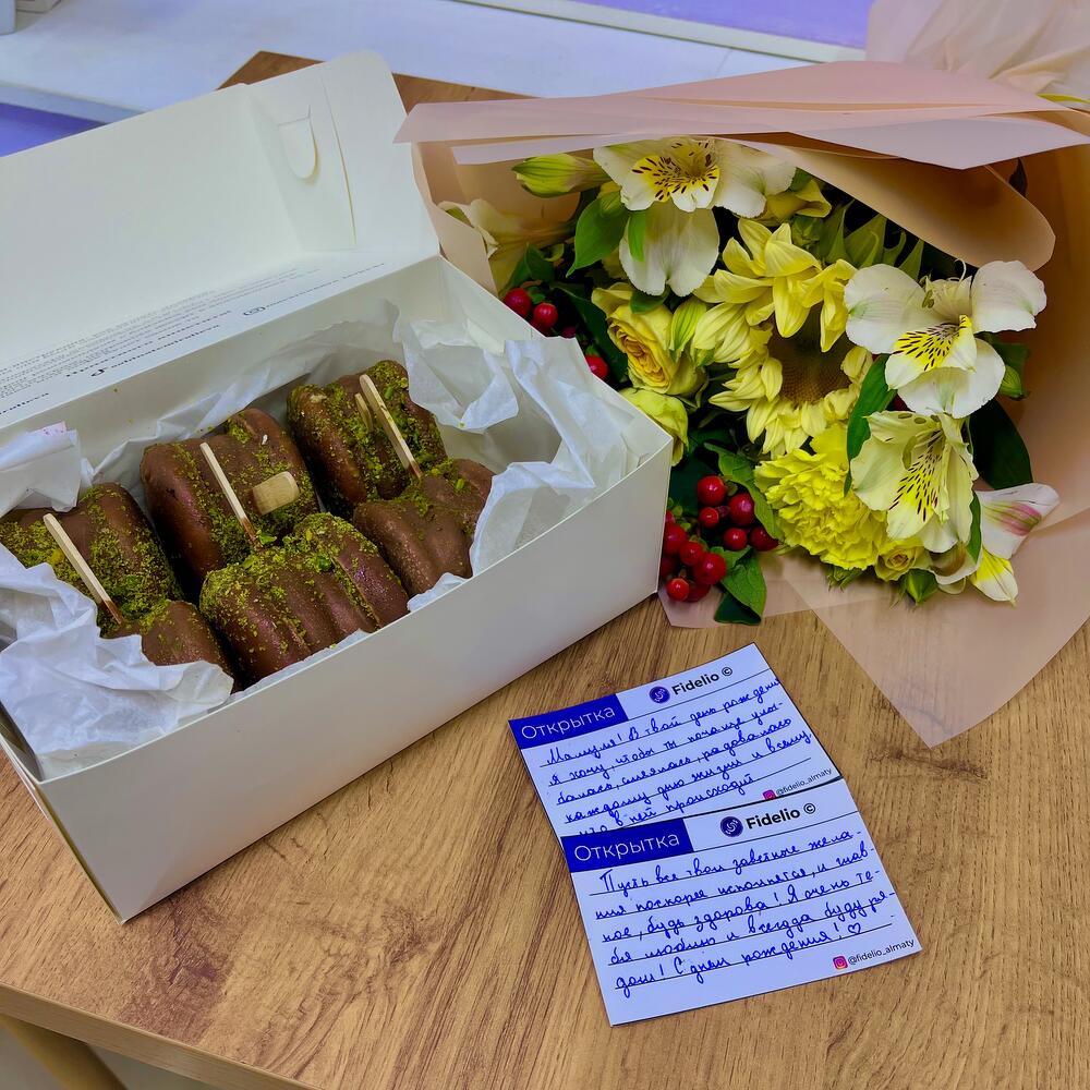 Яркий букет свежих цветов в сочетании с нежным боксом фирменных дубайских макаронс — универсальный подарок, который порадует и удивит. Цветы создают атмосферу праздника, а макаронс добавят сладких эмоций.