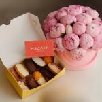 пионы в коробке - 15 шт. мадлен - 10 шт.