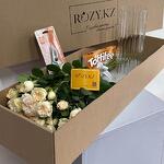 Состав бокса «Сам себе флорист» Роза кустовая-5 веток Ваза-1 штука Секатор-1 штука Конфеты Тофифи 125гр-1 штука