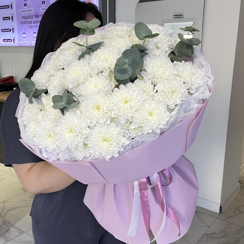 Хризантема кустовая - 8 шт. Эвкалипт - 2 шт.