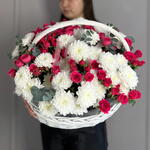 Хризантема кустовая - 8 шт. Кустовая роза - 10 шт. Эвкалипт Микс - 1 шт.