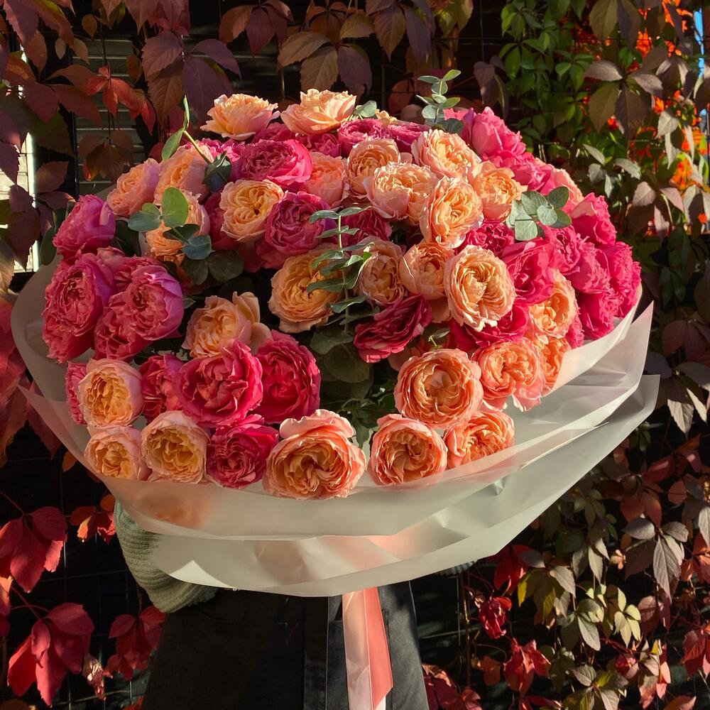 Эвкалипт - 2 шт. кустовая пионовидная роза juliet - 21 шт.