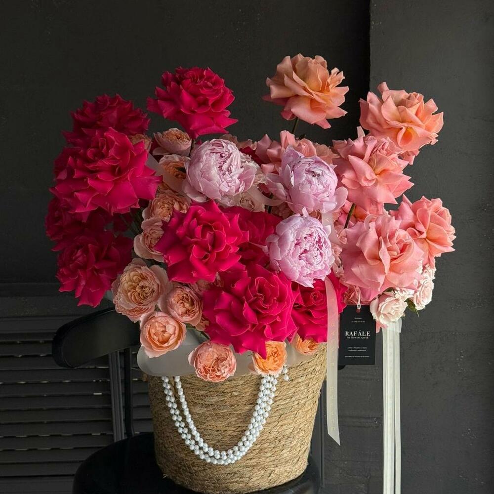 Гортензия - 2 шт. Пион - 3 шт. Роза - 26 шт. Роза спрей - 5 шт. спрей роза пионовидная - 4 шт.