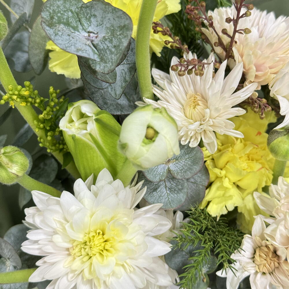 Eucalyptus - 6 шт. Chrysanthemum - 2 шт. dianthus - 2 шт. ranunculus clooney - 3 шт.