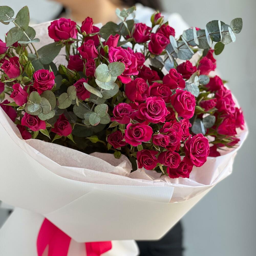 Эвкалипт - 2 шт. Кустовая роза - 11 шт.