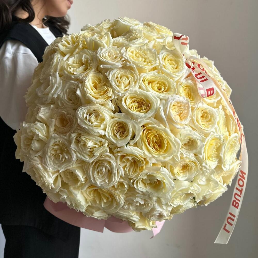 Невероятно впечатляющий и романтичный монобукет, состоящий из ста одной пионовидной розы, станет незабываемым подарком для любимого человека. Великолепие этих бутонов оставит незабываемые впечатления и подарит искреннюю радость. Это воплощение красоты и грации, великолепного вкуса и безграничной любви. Каждый бутон олицетворяет уникальное чувство, словно утверждая: Каждый миг с тобой - особенный. Роскошное флористическое мастерство, представленное в этом монобукете пионовидных роз, принесет ощущение магии и утонченной романтики.