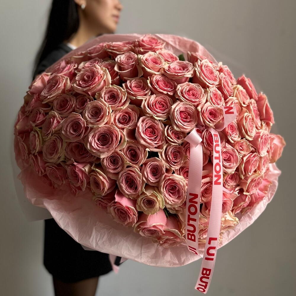 Букет из 101шт роз сорта Джералдин в нежном оформлении — символ любви, внимания и искренних чувств. Такой букет никогда не останется без эмоций