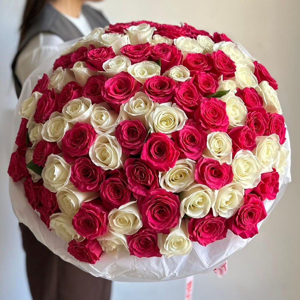 Представляем вашему вниманию невероятно эффектный монобукет, состоящий из 101 стильной и душистой розы. Этот букет умеет говорить сами за себя - о любви, о признании, о восхищении. Каждый бутон раскрывается и отражает несравненную красоту, как улыбка любимого человека. Идеальный подарок для тех, кто ценит внимание и заботу в ваших проявлениях.