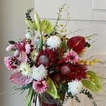 Амариллис - 1 шт. Антуриум - 8 шт. Дельфиниум - 2 шт. Илекс - 3 шт. Маттиола - 5 шт. Протея - 3 шт. Гербера - 5 шт. Нутан - 3 шт. Ранункулюс - 5 шт. онцидиум - 5 шт.
