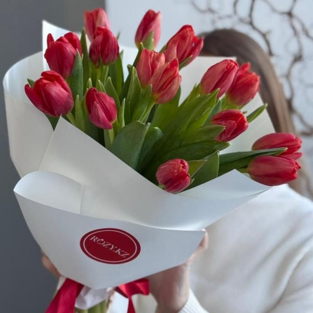 Букет 15 красных тюльпанов
