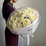 Букет из 15 ароматных пионовидных роз сорта Candlelight, в котором сплелись лёгкость и искренность