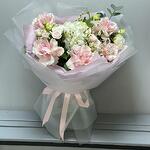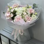 🌸 Букет “Воздушная нежность” 🌸 Этот изысканный букет – воплощение утончённости и лёгкости, созданный, чтобы выразить самые трепетные чувства. Его пастельные оттенки и текстуры идеально подчёркивают элегантность момента. 🌺 Состав: • Нежно-розовые розы (5 шт.) – символ любви и грации. • Пышная белая гортензия (1 шт.) – олицетворение изобилия и искренности. • Утончённый белый лизиантус (4 шт.) – знак чистоты и нежности. • Белые спрей-розы (4 шт.) добавляют изысканности и воздушности. • Восковой цветок (3 шт.) – тонкий декоративный акцент. • Эвкалипт Цинерия (3 веточки) придаёт букету свежесть и динамичность. 🎀 Оформление: • Бумага тишью нежно-розового цвета добавляет мягкости и романтики. • Матовая полупрозрачная плёнка (6 листов) подчёркивает современный стиль. • Лента репсовая в нежно-розовом оттенке завершает композицию утончённым штрихом. 📌 Подходит для: • Признания в чувствах. • Свадебного подарка. • Изящного комплимента для любимого человека. Подарите мгновение красоты и вдохновения!