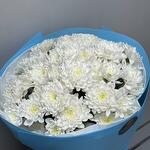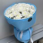 Хризантема балтика белая - 12 шт. бумага тишью белая - 3 шт. фоамиран голубой - 3 шт. лента репсовая белая и голубая - 1 шт.