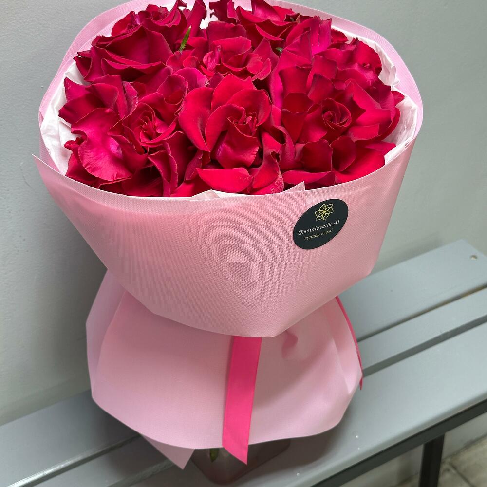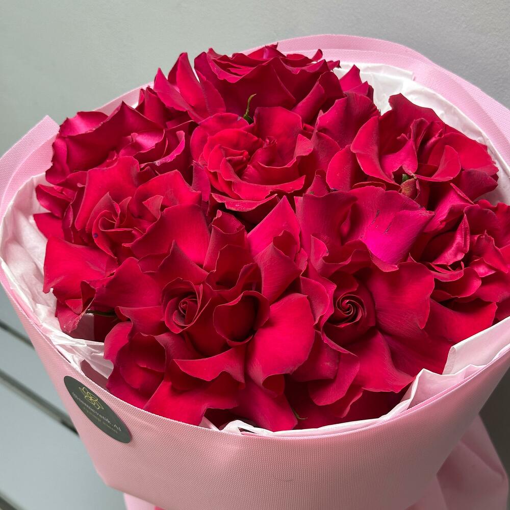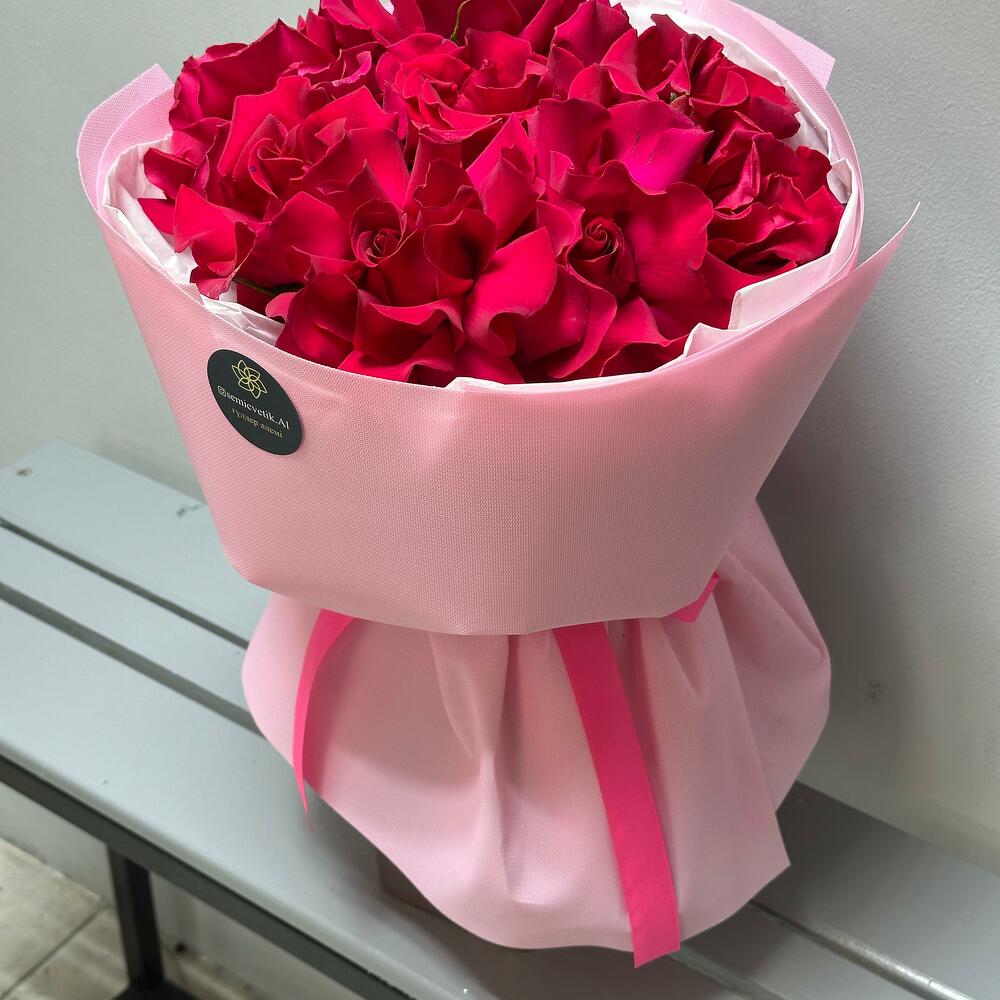 Этот утонченный букет — воплощение страсти и нежности! 💖 Бархатистые малиновые розы 🌹 переливаются насыщенными оттенками, создавая эффект роскоши и тепла. Нежно-розовое оформление в сочетании с воздушной бумагой тишью и мягким фоамираном придает композиции лёгкость и элегантность. 🎀 Завершающий штрих — изящная репсовая лента, которая добавляет нотку утончённого шарма. Такой букет станет идеальным признанием в чувствах и подарит незабываемые эмоции! 💕