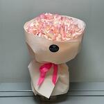 Роза нежно-розовая - 7 шт. бумага тишью белая - 3 шт. фоамиран нежно-розовый - 3 шт. лента репсовая ярко-розовая - 1 шт.