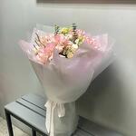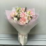 🌿 Легкость, нежность и изысканность в одном букете! 🌸 Этот утонченный букет словно соткан из самых нежных оттенков природы. Белые кустовые розы и лизиантусы олицетворяют чистоту и элегантность, а нежно-розовые розы добавляют теплоты и романтики. Легкость композиции подчеркивает эвкалипт Бэби-Блю, создавая ощущение воздушности. ✨ Полупрозрачное матовое оформление в сочетании с невесомой нежно-розовой тишью делает букет по-настоящему утонченным. Завершающий штрих — изящная репсовая лента, подчеркивающая нежный характер этой композиции. 🎀 Дарите моменты, наполненные теплотой и красотой! 💕