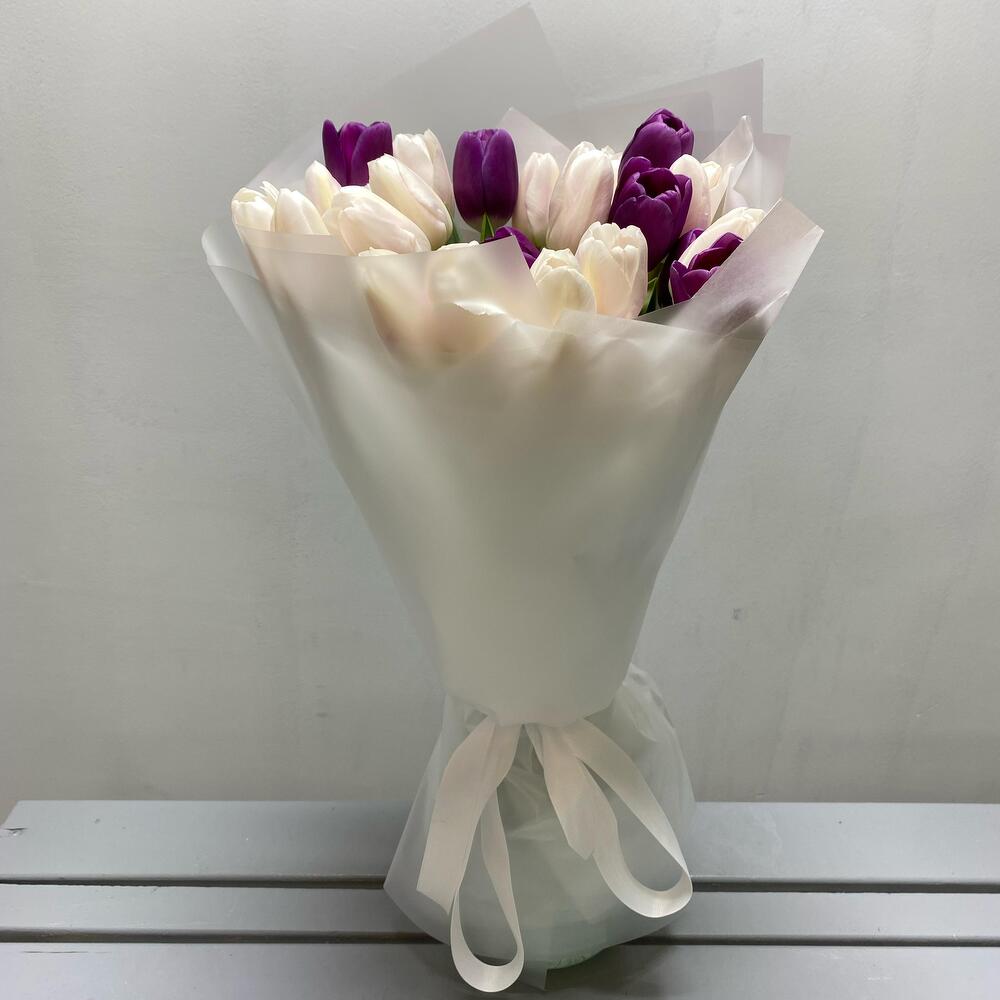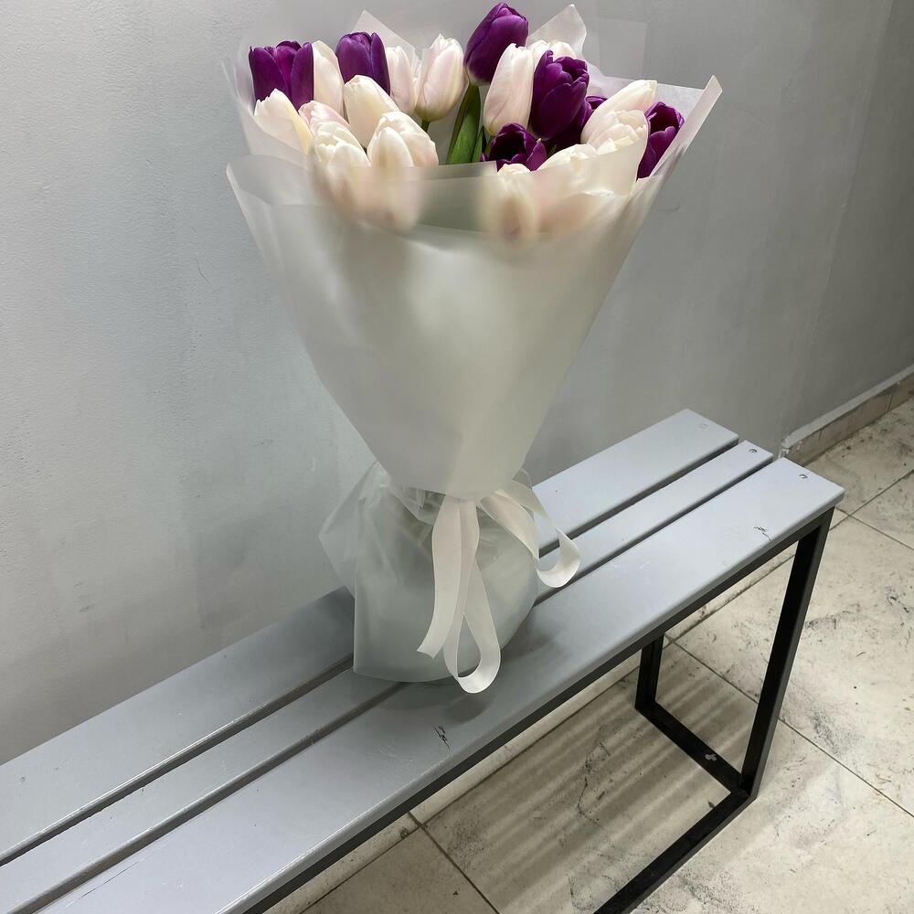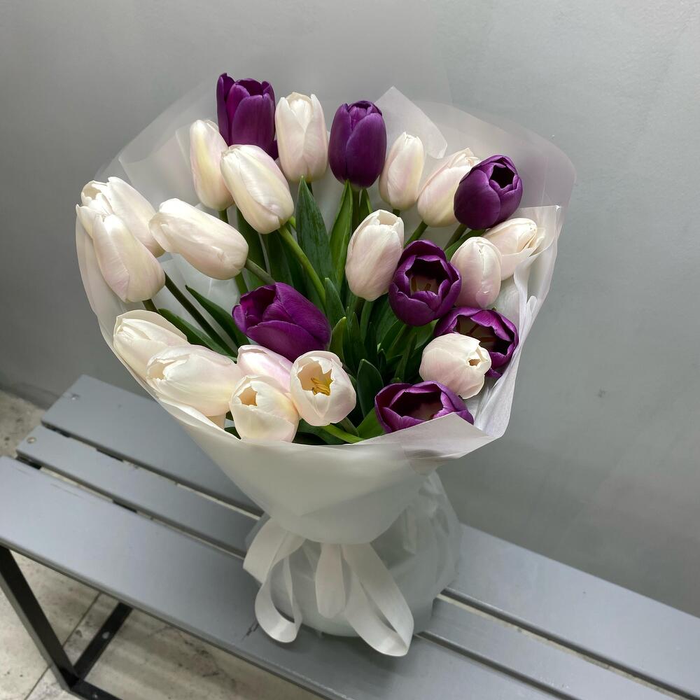 Букет «Весеннее очарование» 🌷✨ Этот нежный и стильный букет из 25 свежих тюльпанов — идеальный способ выразить чувства! 💖 Белоснежная упаковка из тишью-бумаги и полупрозрачной матовой аква-бумаги придаёт композиции воздушность и элегантность ☁️🎀, а репсовая лента аккуратно завершает образ, добавляя изысканный штрих. 💐 Прекрасный выбор для особого случая или просто, чтобы порадовать близкого человека! 💕