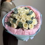 Этот букет из роз смотрится аккуратно и эстетично, наполняя момент теплом и особым настроением