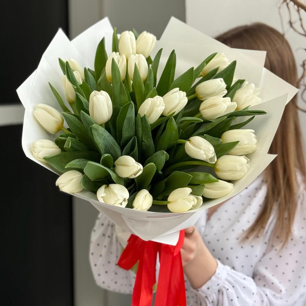 Букет 25 белых тюльпанов