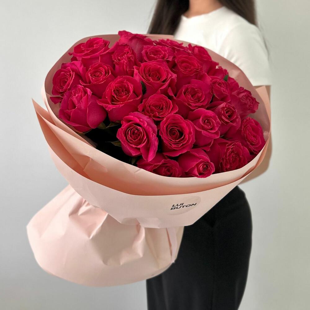 Классический букет из 25шт голландских роз всегда в тренде. Лаконичный и элегантный, он станет универсальным подарком для близких