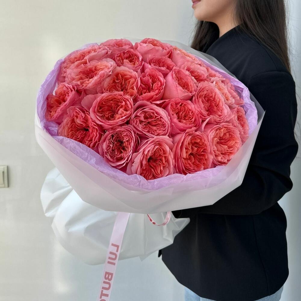 Букет из 25шт пионовидных роз сорта Pink Expression
