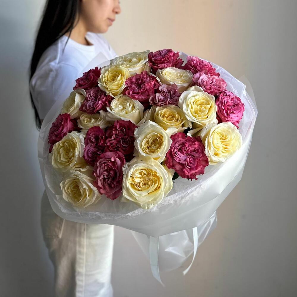 Убедительный в своей простоте, утонченный монобукет из 25 пионовидных роз станет символом ваших наилучших чувств. Эти превосходные цветы с формой пиона хорошо известны своим долгим цветением, их пышные бутоны дарят ощущение праздника и радости каждый день. Этот букет идеально подойдет для любого случая, будь то праздничное мероприятие или свидание. Изысканность роз и их превосходная форма не оставят равнодушными никого.