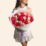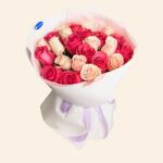 Этот букет, изысканно оформленный из 25 роз, словно сцена для великого театрального представления страсти и красоты. Каждая роза — как актер на этой эстетической сцене, представляющая в себе силу и великолепие.