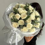 Классика, которая всегда говорит о чувствах без лишних слов. 25 белых голландских роз — символ искренней любви, чистоты и уважения, а свежий эвкалипт добавляет букету лёгкость и благородный аромат. Этот букет выбирают, когда хочется сделать красивый, уверенный и очень достойный жест. Идеален для 14 февраля — для жены, девушки или человека, к которому испытывают по-настоящему тёплые чувства.