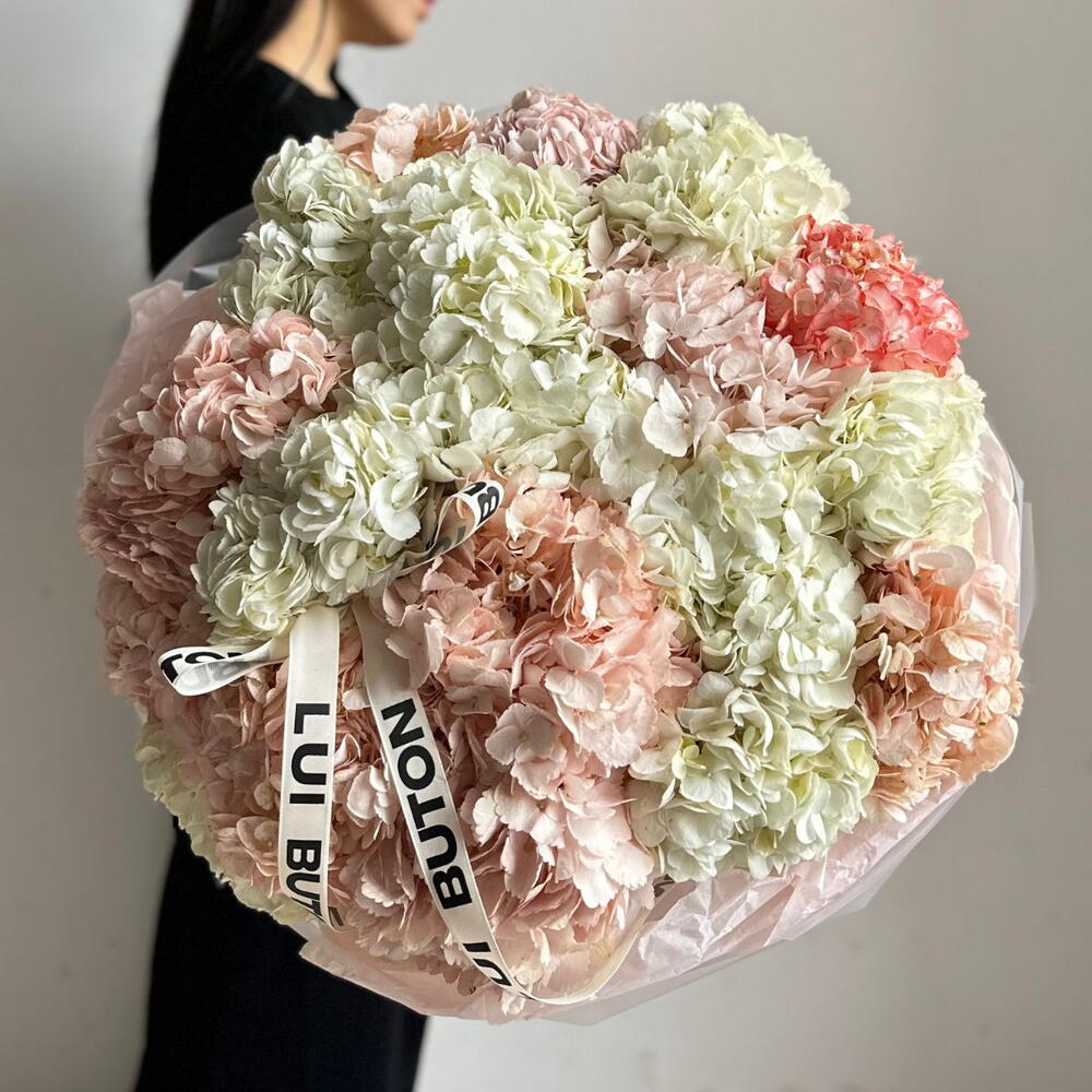 Букет из 27шт гортензий. Их аромат и благородные оттенки придают букету по-настоящему романтичный характер. Такой букет делает момент особенным