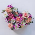 Гипсофила - 1 шт. Эвкалипт - 1 шт. Гвоздика - 5 шт. Хризантема Зембла белая - 1 шт. Коробка - 1 шт. Пиафлор - 1 шт. роза микс - 3 шт.