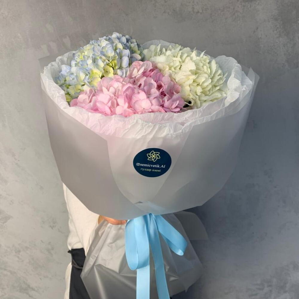 “Облака мечты” ☁️🎀 Нежность, грация и воздушность — всё это про наш изысканный букет! Три волшебные гортензии 🌸🌿 белая, розовая и голубая — создают гармоничную палитру, напоминающую утреннее небо после дождя. Воздушная белая тишью, элегантная розовая аква-бумага и нежная голубая лента добавляют утончённости и стиля. “Облака мечты” — идеальный подарок для романтиков, мечтателей и просто дорогих сердцу людей! 💙💗🤍
