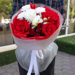 Хризантема Зембла белая - 1 шт. Лагурус - 5 шт. Роза кустовая Микс - 1 шт. роза reedom - 3 шт. эустома гелеб белая - 1 шт.