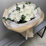 🤍 «Дыхание Тишины» 🤍 Идеальный букет для утончённых и нежных натур. 🌼 7 белоснежных хризантем Балтика — символ чистоты, искренности и спокойствия, в обрамлении свежего эвкалипта, придающего композиции лёгкую природную нотку 🌿 Белая тишью и бежевый фоамиран создают мягкое, воздушное настроение, а репсовая лента в белом цвете 🎀 завершает образ с тонким вкусом. ✨ «Дыхание Тишины» — когда хочется выразить заботу, благодарность или просто сказать: «Ты — свет в этом мире». 🌤️