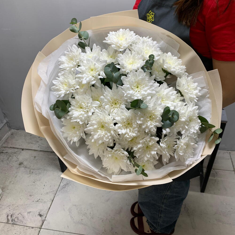 🤍 «Дыхание Тишины» 🤍 Идеальный букет для утончённых и нежных натур. 🌼 7 белоснежных хризантем Балтика — символ чистоты, искренности и спокойствия, в обрамлении свежего эвкалипта, придающего композиции лёгкую природную нотку 🌿 Белая тишью и бежевый фоамиран создают мягкое, воздушное настроение, а репсовая лента в белом цвете 🎀 завершает образ с тонким вкусом. ✨ «Дыхание Тишины» — когда хочется выразить заботу, благодарность или просто сказать: «Ты — свет в этом мире». 🌤️