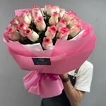 🌹 Букет «25 поцелуев» 💋 Роскошь, грация и бесконечная нежность — в каждом цветке! 25 розовых роз 🌷 — это не просто букет, а настоящий роман, рассказанный без слов. Белоснежная тишью и розовое оформление 🎀 подчёркивают элегантность и глубину чувств. 💖 Идеальный подарок для признания в любви, юбилея или просто… чтобы растопить сердце.