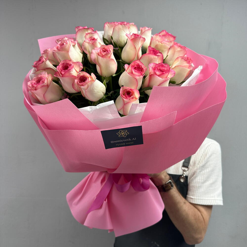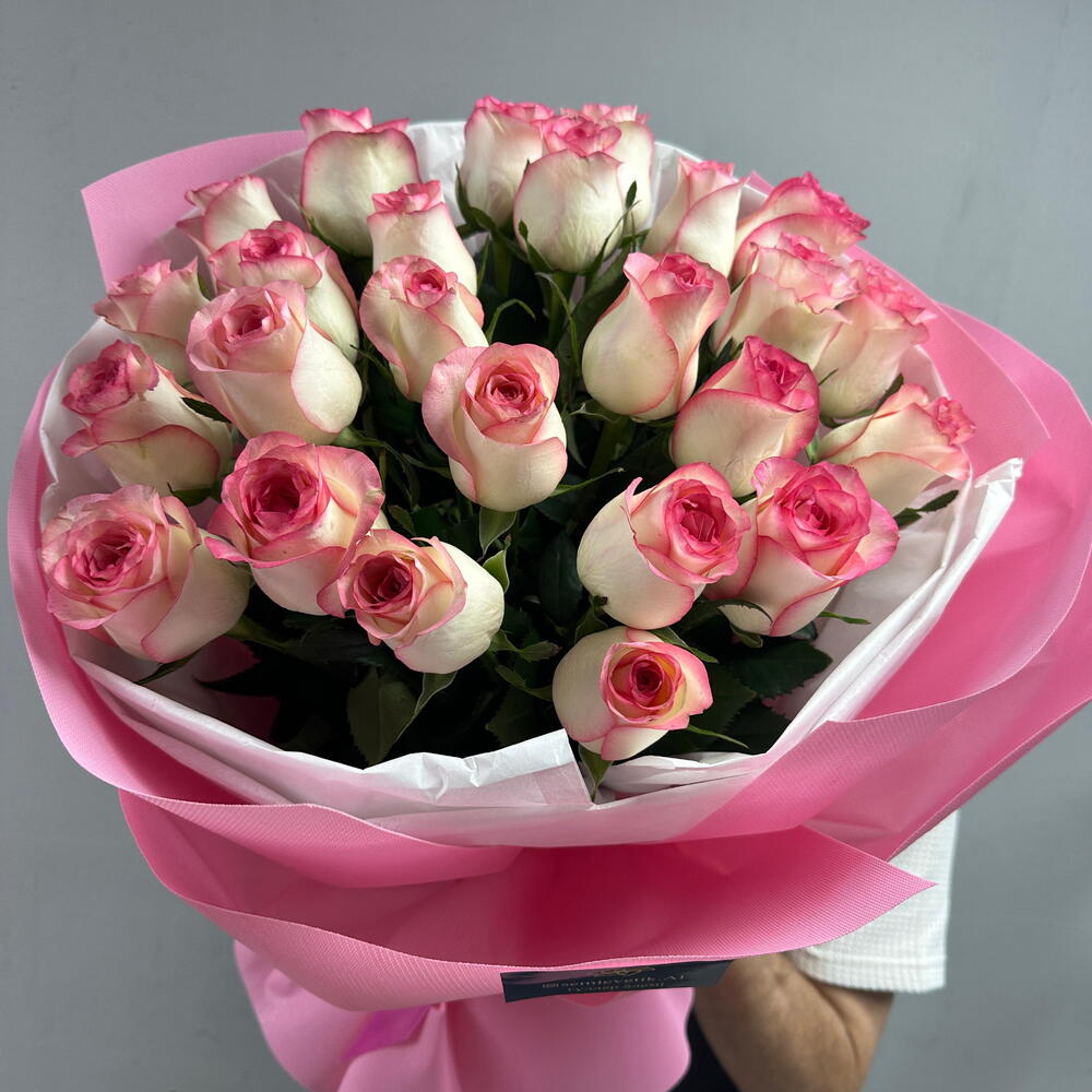 🌹 Букет «25 поцелуев» 💋 Роскошь, грация и бесконечная нежность — в каждом цветке! 25 розовых роз 🌷 — это не просто букет, а настоящий роман, рассказанный без слов. Белоснежная тишью и розовое оформление 🎀 подчёркивают элегантность и глубину чувств. 💖 Идеальный подарок для признания в любви, юбилея или просто… чтобы растопить сердце.