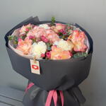 🌷 Розовый Рассвет 🌷 Описание: Этот букет — как нежный рассвет, который нежно просыпается и наполняет мир мягкими красками. 🌸 Розовые гортензии, словно утренний туман, дарят ощущение свежести, а белые гвоздики добавляют легкости и утонченности. 🌿 🌹 Кустовые розы София и нежные розы розового оттенка создают атмосферу тепла и романтики, а эвкалипт Бэби-блю наполняет композицию легким зелёным акцентом, словно свежий ветер в раннем утре. 💖 Каждый цветок в букете — это символ изысканности и элегантности, а оформление в темно-серой бумаге и лентах придает композиции изысканность и стиль. 🎀 Идеален для: 💐 Подарка на важное событие 🌷 Романтического сюрприза 🌸 Эмоционального акцента в любом интерьере Дайте волю эмоциям с этим великолепным букетом! 🌹💖